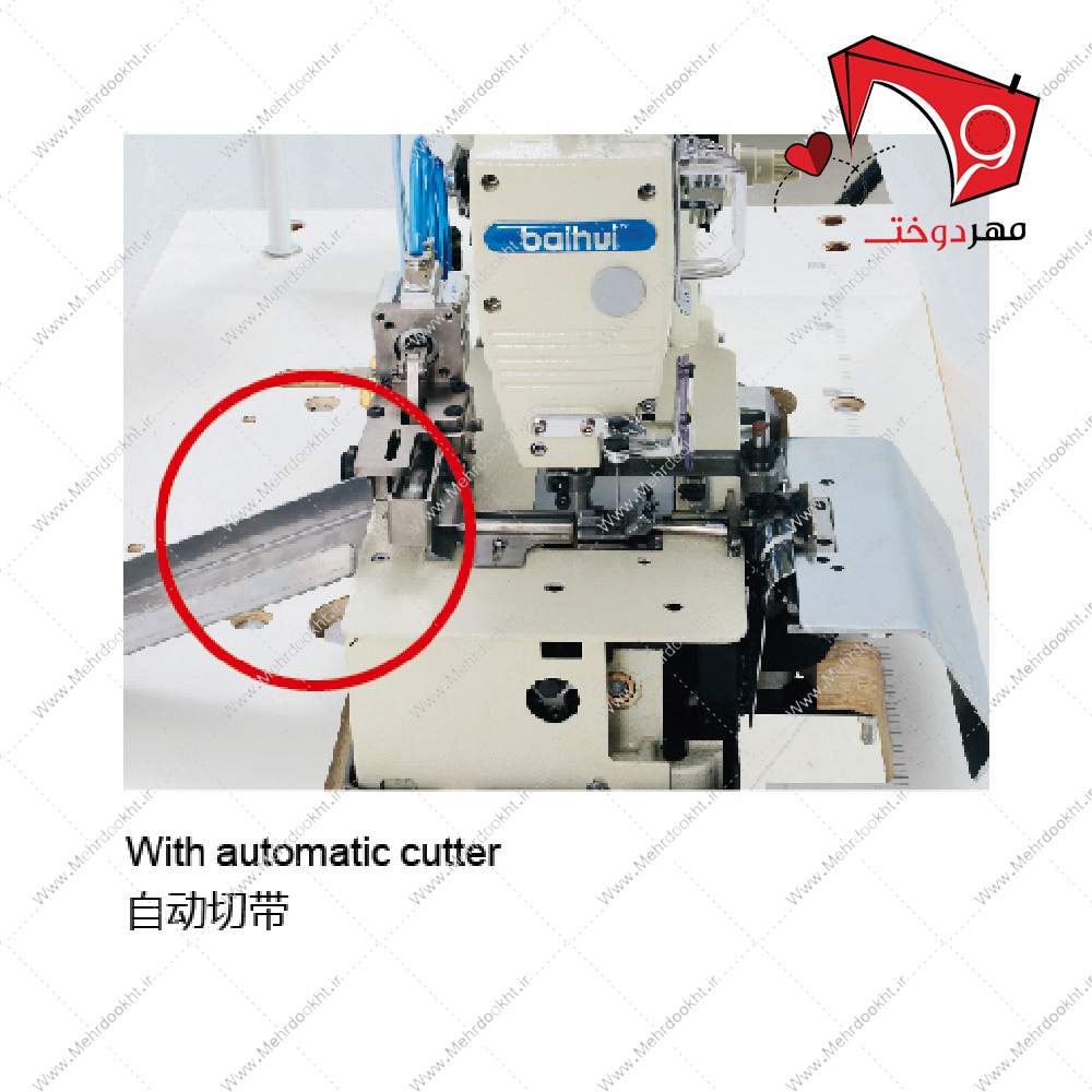 - قابلیت برش پلهای دوخته شده پس از دوخت با طول مشخص و قابل تنظیم بهصورت پشت سر هم
