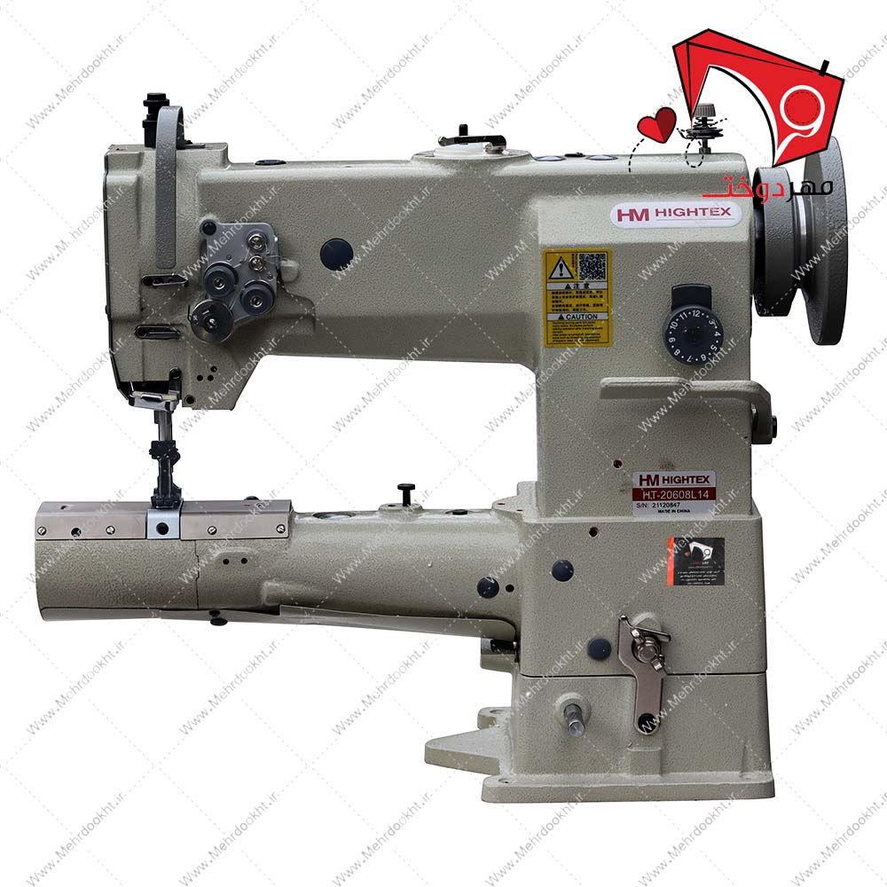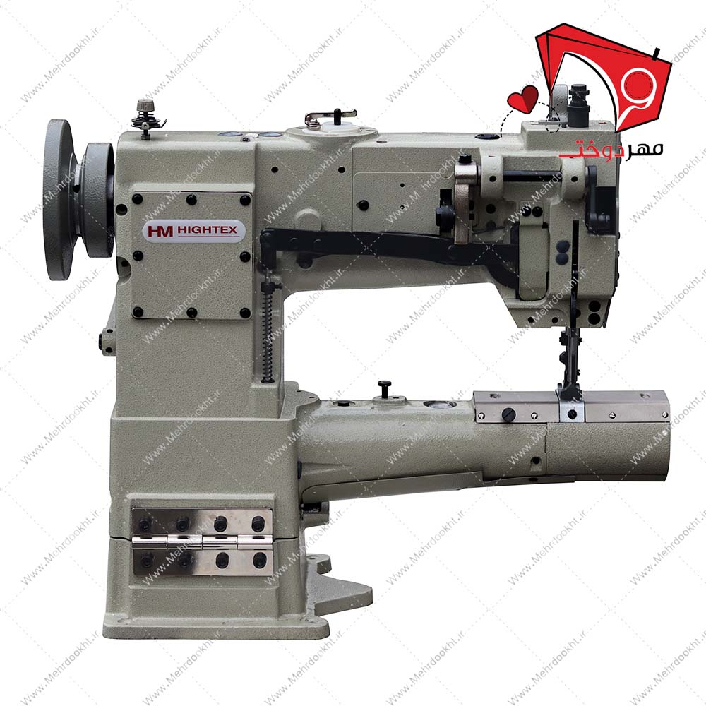 چرخ خیاطی بطر دو سوزن دو ماکو هایتکس برند هایتکس مخصوص دوخت فیلتر، چرم و روکش صندلی، تجهیزات مبلمان و کیفهای پوششی با بازوی استوانهای مناسب برای دوخت انواع مواد و اجسام بسیار ضخیم، اجسام لولهای و مواردی که نیاز به چرخاندن جسم درحال دوخت است.